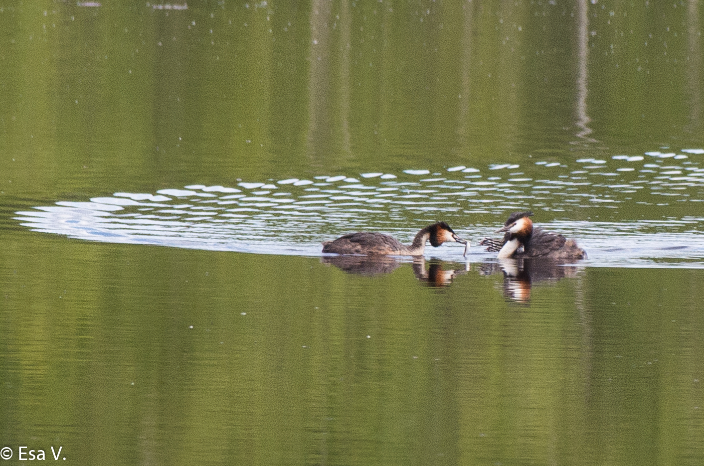 Kolme poikasta on silkkiuikuille aika paljon luulenpa että ravinto ei tule kaikille riittämään. Edellisellä kerralla 2013 kesällä poikasista lähti yksi lentoon. Tosin ruokkijoitakin oli vain yksi. Kyllä siinäkin piipitystä riitti emolla kuultavaksi.